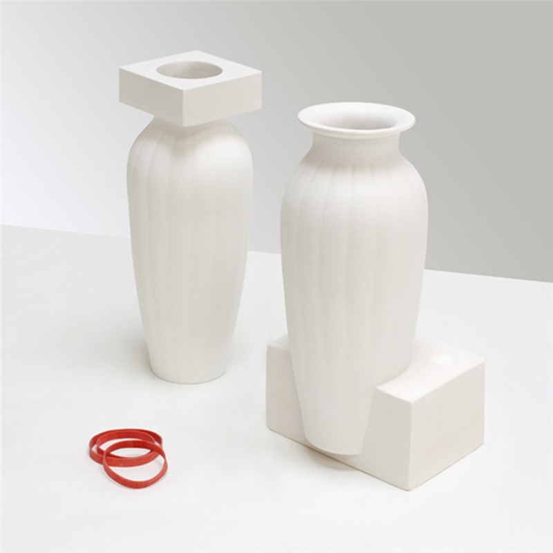 石膏注漿成型的模具通常在使用后就被丟棄。這些白色優(yōu)美剛?cè)岵?jì)的花瓶從模具中來并表達(dá)出通常不為人們所見的模具之美。